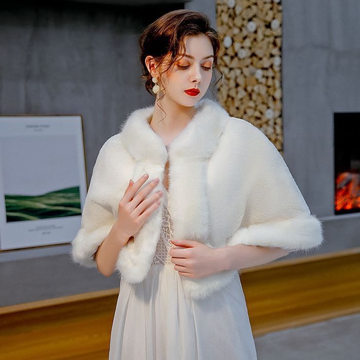 ファーショール レディース ボレロ ケープ ファー ファーポンチョ ふわふわ もこもこ ショール パーティー 冬 暖かい ウェディングドレス ポンチョ 披露宴 二次会 演奏会 発表会 shankuan 11
