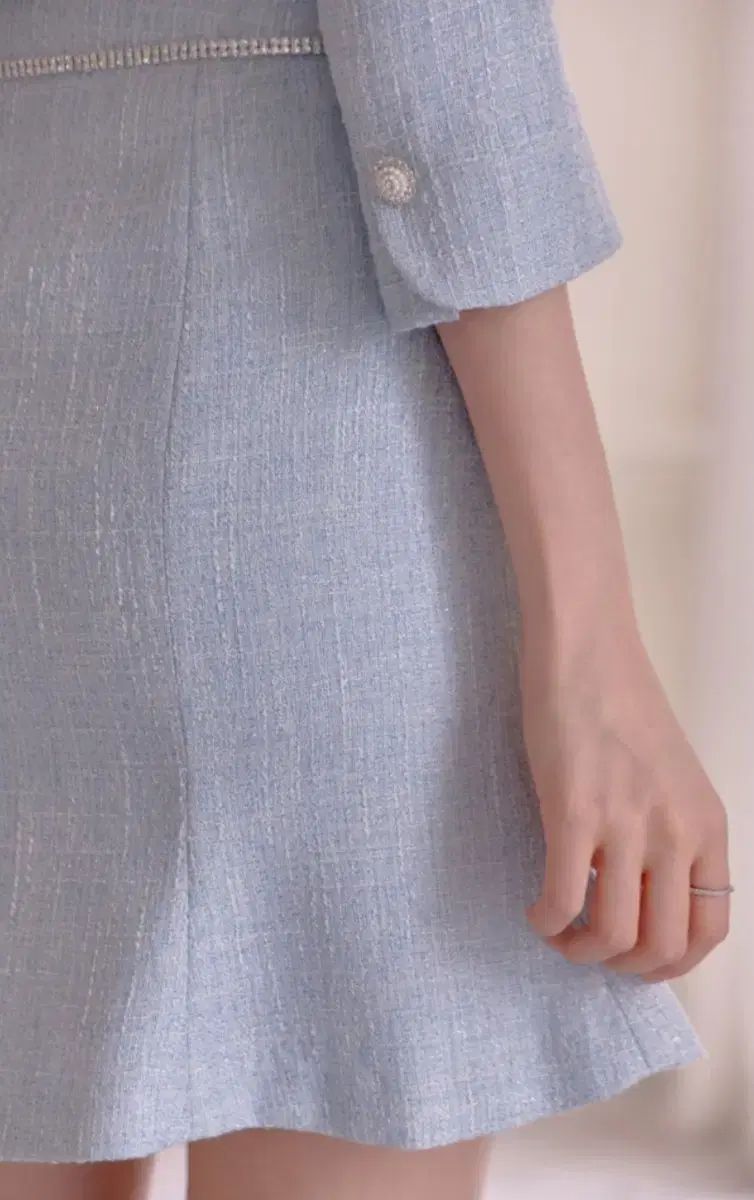 ジャケットボタンとスカート付きライトブルーツイード