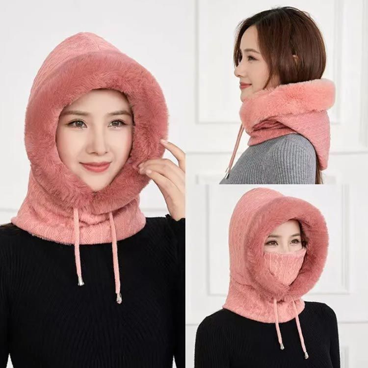 ネックウォーマーと帽子、フェイスマスクが一体化した帽子です。