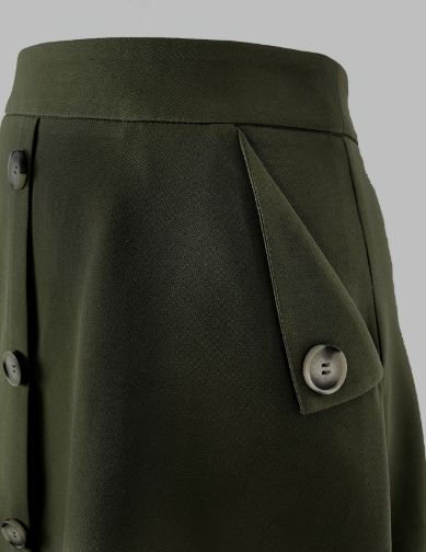 上品なシルエットで大人女性の魅力を引き立てる前ボタン付きフレアスカート。