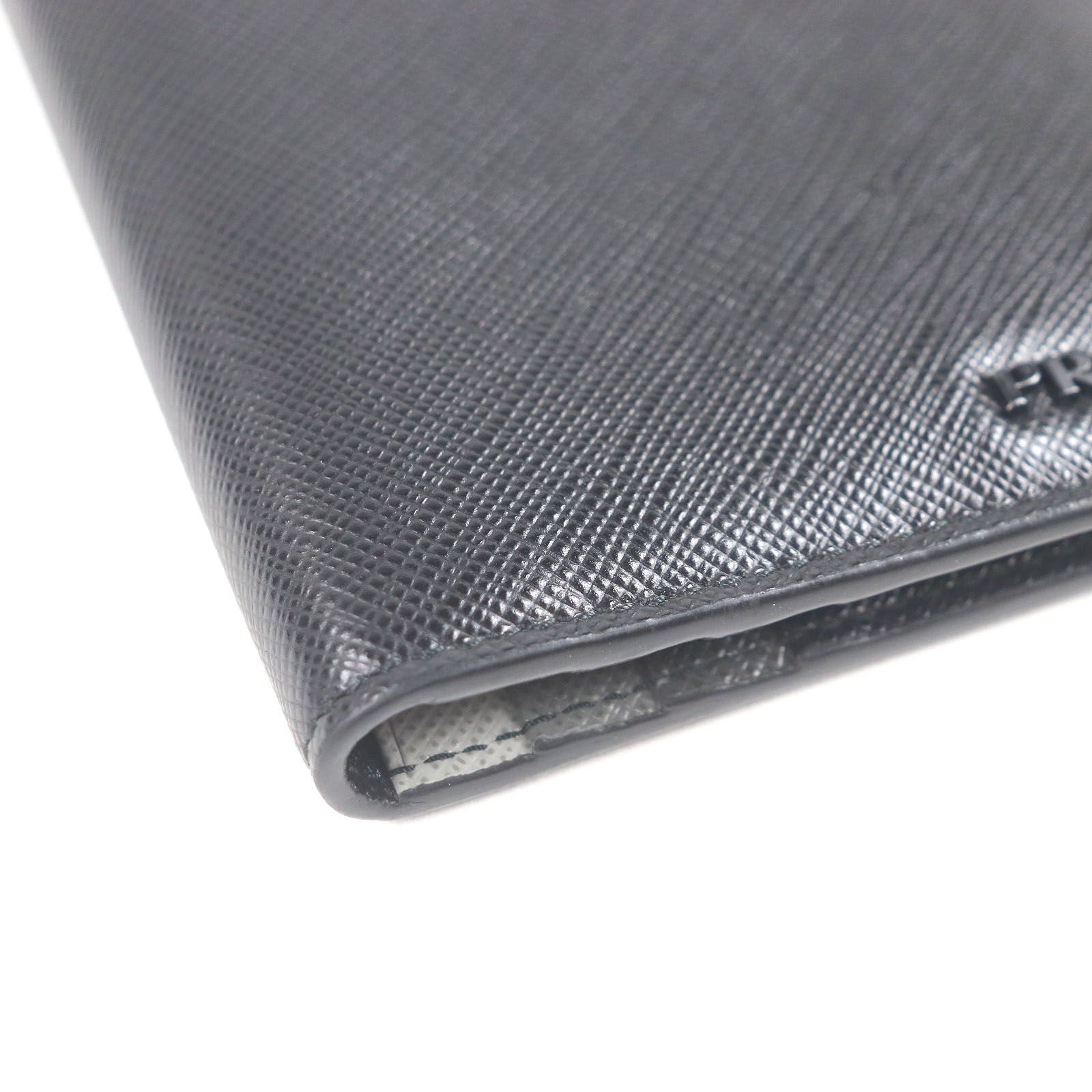 PRADA プラダ 2 MO 004 ロゴプレート サフィアーノ マルティック レザー 二つ折り カードケース 札入れ ネロ イタリア製 メンズ