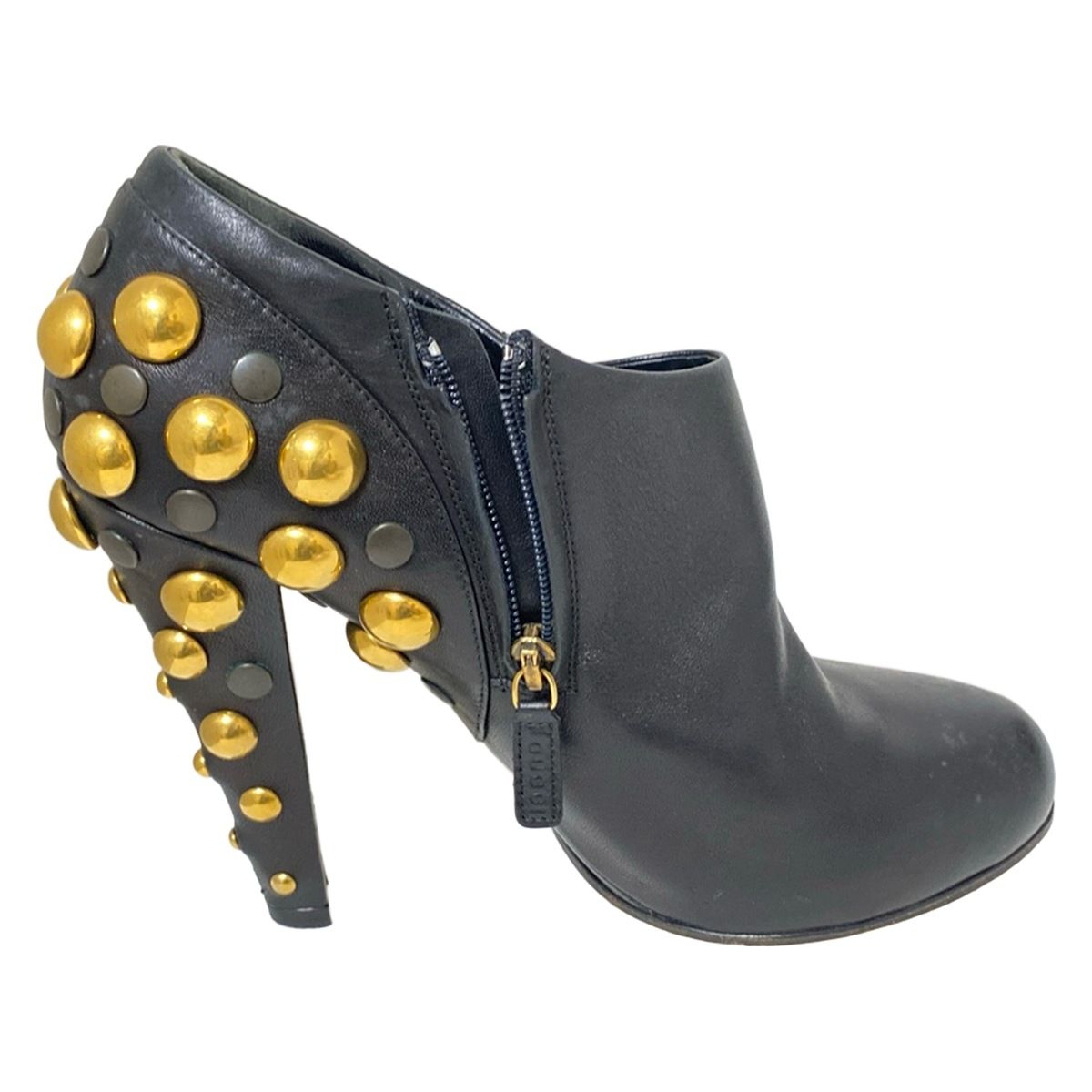 GUCCI グッチ ブーティ 37 レディース - 208394 黒 スタッズ アウトソール張替済 レザー