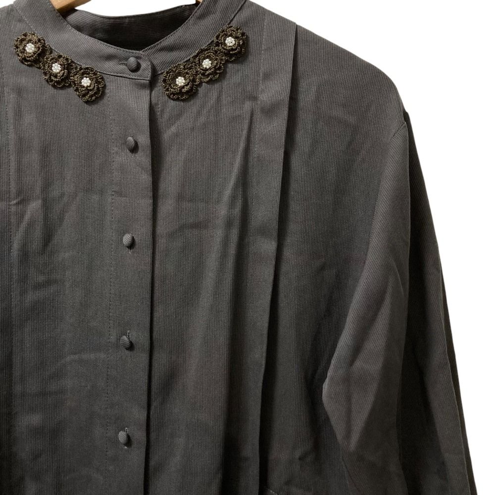 INGEBORG インゲボルグ フラワーモチーフ付 ロングワンピース チャコール レディース 古着