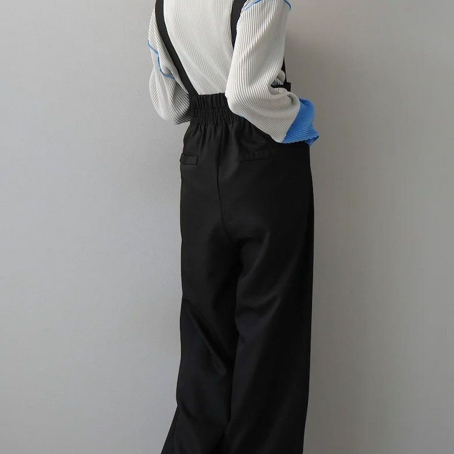 Lumier 配色プリーツボートネックトップス グレーブルー ゴールドボタンサスペンダーワイドパンツ 2 set 管理番号 684