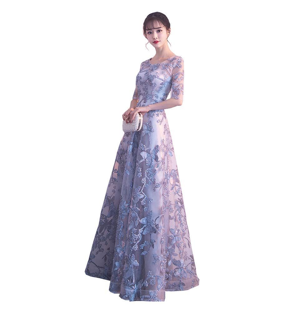 3XL_グレー [wpart] エレガント 袖あり 結婚式 ドレス ロング丈 グレー カラードレス 花嫁 パーティードレス 二次会ドレス 謝恩会ドレス カクテルドレス ウエディングドレス 忘年会 女子会 フォーマルドレス ロングドレス (XXXL)