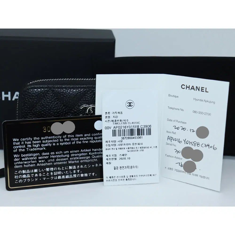 CHANEL Classic キャビア シルバー ジッパー カードウォレット 30番台