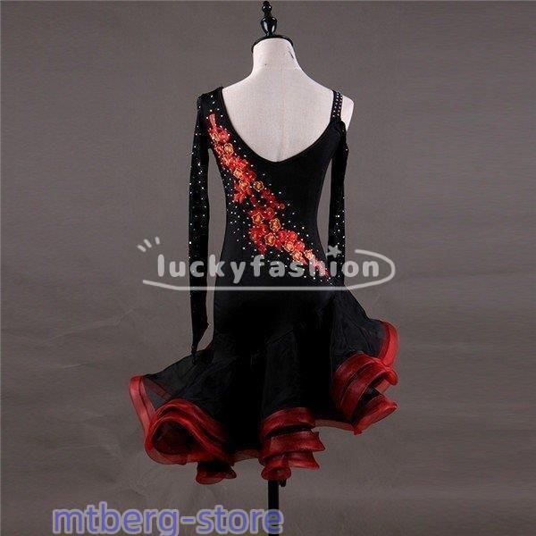 ラテン衣装 社交ダンス 社交ダンス ラテンドレス ワンピース 黒 赤 衣装 キャバ ダンス衣装 練習服 スタンダード ワルツ ラテンダンス 社交ダンス ラテン ドレス ラテンドレス 競技着 練習着 演出用 舞台・発表会ドレス