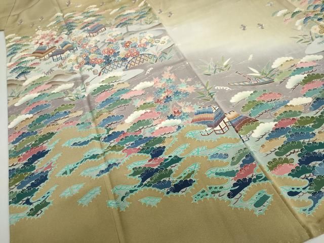 平和屋着物●本加賀友禅作家 奥原一就 色留袖 飛鳥流水風景文 暈し染め 正絹 ud