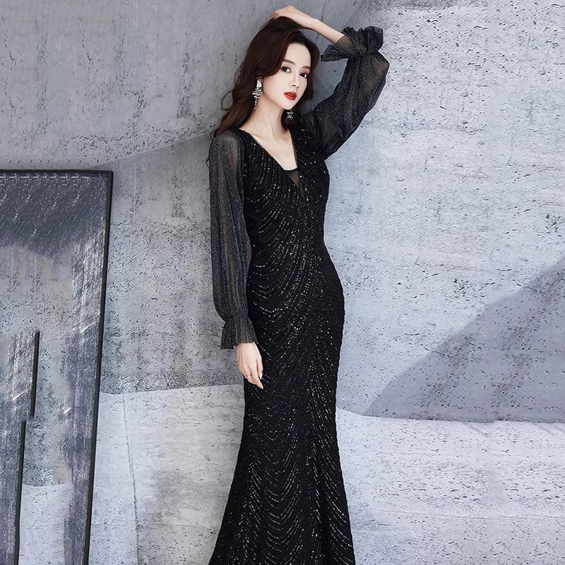 ドレス ロングドレス イブニングドレス ワンピース ロング丈 演奏会 大きいサイズ お呼ばれドレス Vネック キラキラ 二次会 お呼ばれ 結婚式 発表会 黒ドレス 上品 ピアノ発表会 同窓会 成人式 韓国
