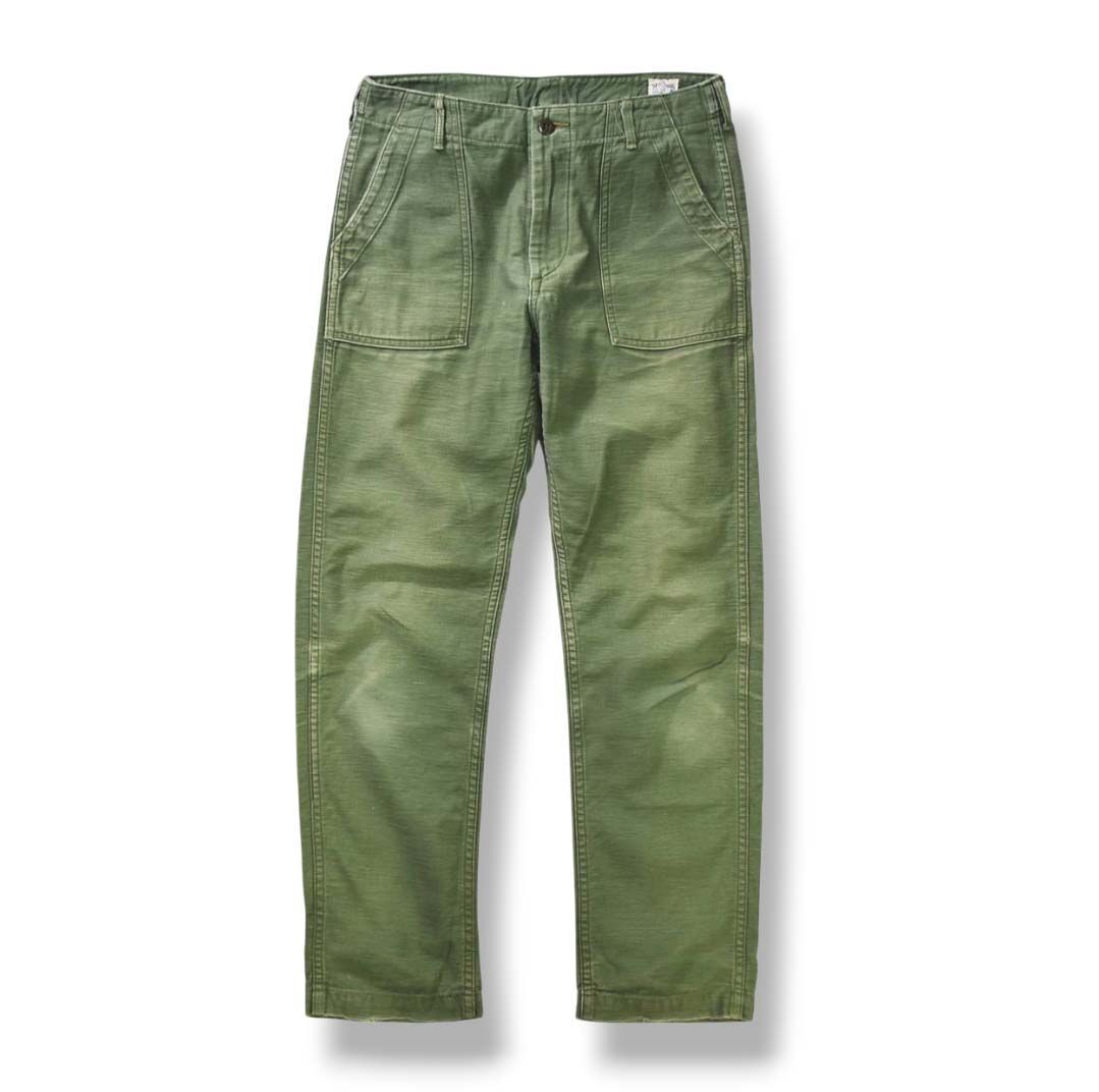 日本製 オアスロウ orslow ミリタリー ベイカーパンツ ファティーグパンツ ユニバーサル ジップアップ UNIVERSAL ZIP リバースサテン M オリーブ アメリカン カジュアル ウェア メンズ