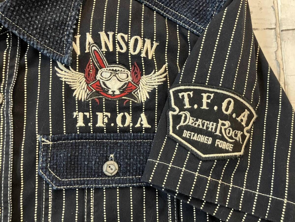 VANSON バンソン 半袖シャツ T.F.O.A デスラビット 武装戦線 Mサイズ 紺色 アメリカンカジュアル