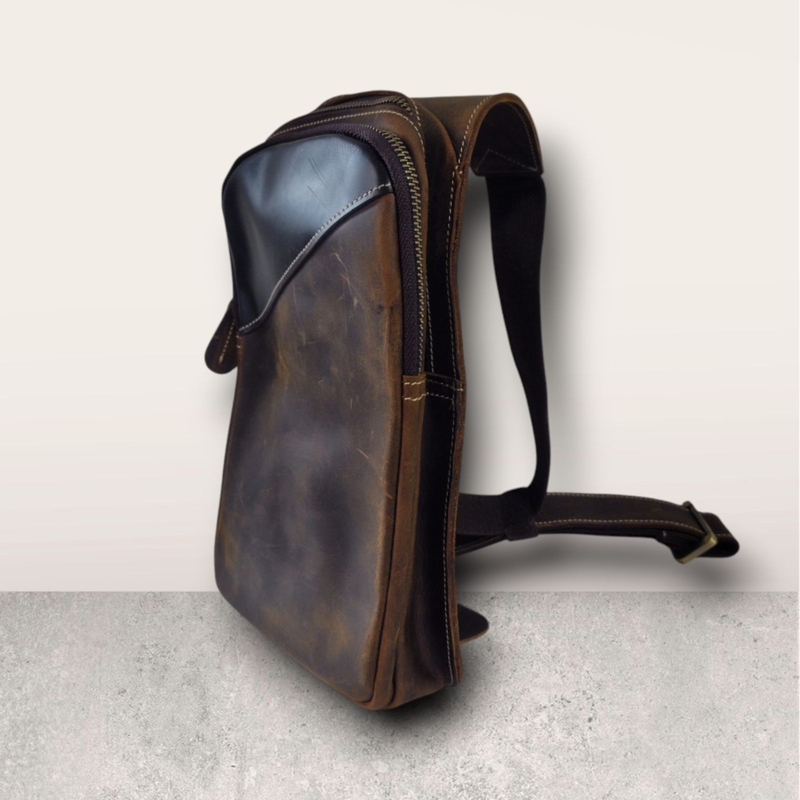 TIDING 天然牛革 ボディーバッグ ダークブラウン ヴィンテージ風 本革 ワンショルダー 斜め掛け 鞄