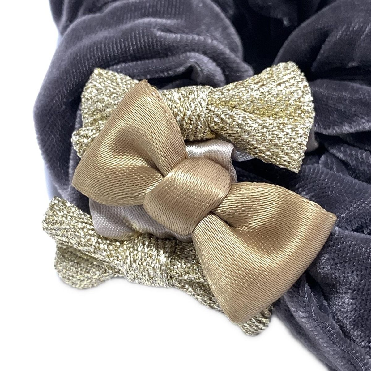 LUDLOW ラドロー シュシュ - ダークグレー×ベージュ×ゴールド リボン
