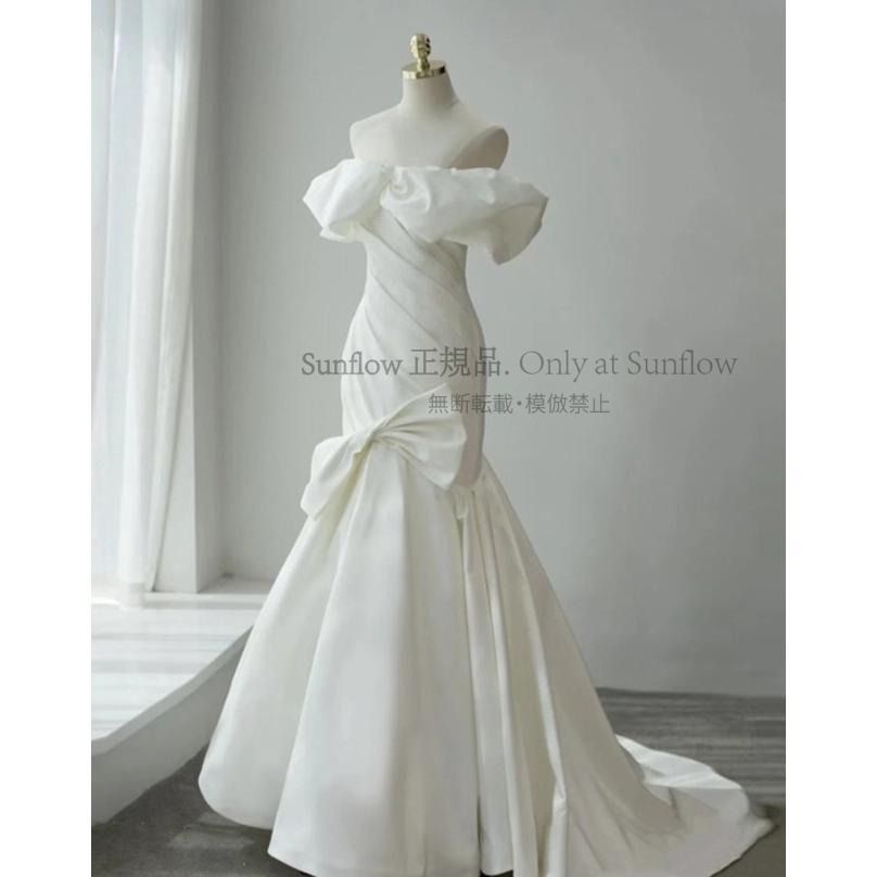 ウエディングドレス マーメイド トレーン ウェディングドレス 袖あり オフショルダー ドレス ロングドレス マキシ丈 リボン 大きいサイズ 小さいサイズ 白