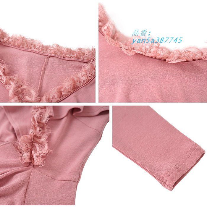 大きめフリル 深スリットスカート 長袖ロングタイトドレスワンピース ピンク キャバ スナック パーティー ドレス レディース 韓国 yan 5 a 387745