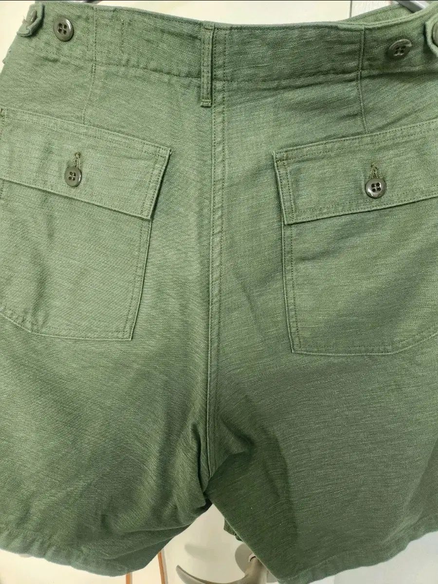 オアスロウ ファティーグ ハーフパンツ ウィメンズ Sサイズです。カーキ色のしっかり素材のコットンで作られています。デイリーウェアとして活用しやすいデザインです。コメントなければすぐ安全決済してください!