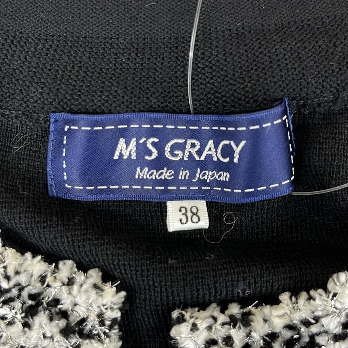M S GRACY エムズグレイシー カーディガン サイズ38 レディース - 黒×白 長袖|ラメ|ロング丈