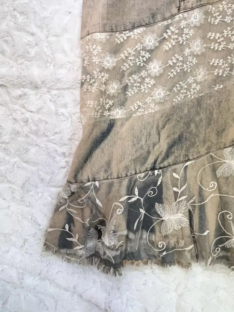 ヴィンテージ レース デニム ロング スカート ベルト 含む