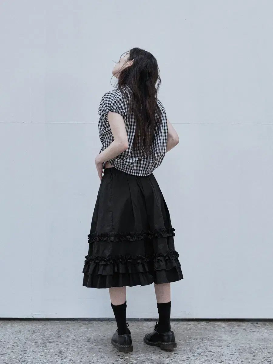 Saenginstudios フリル プリーツ ミディ スカート 黒