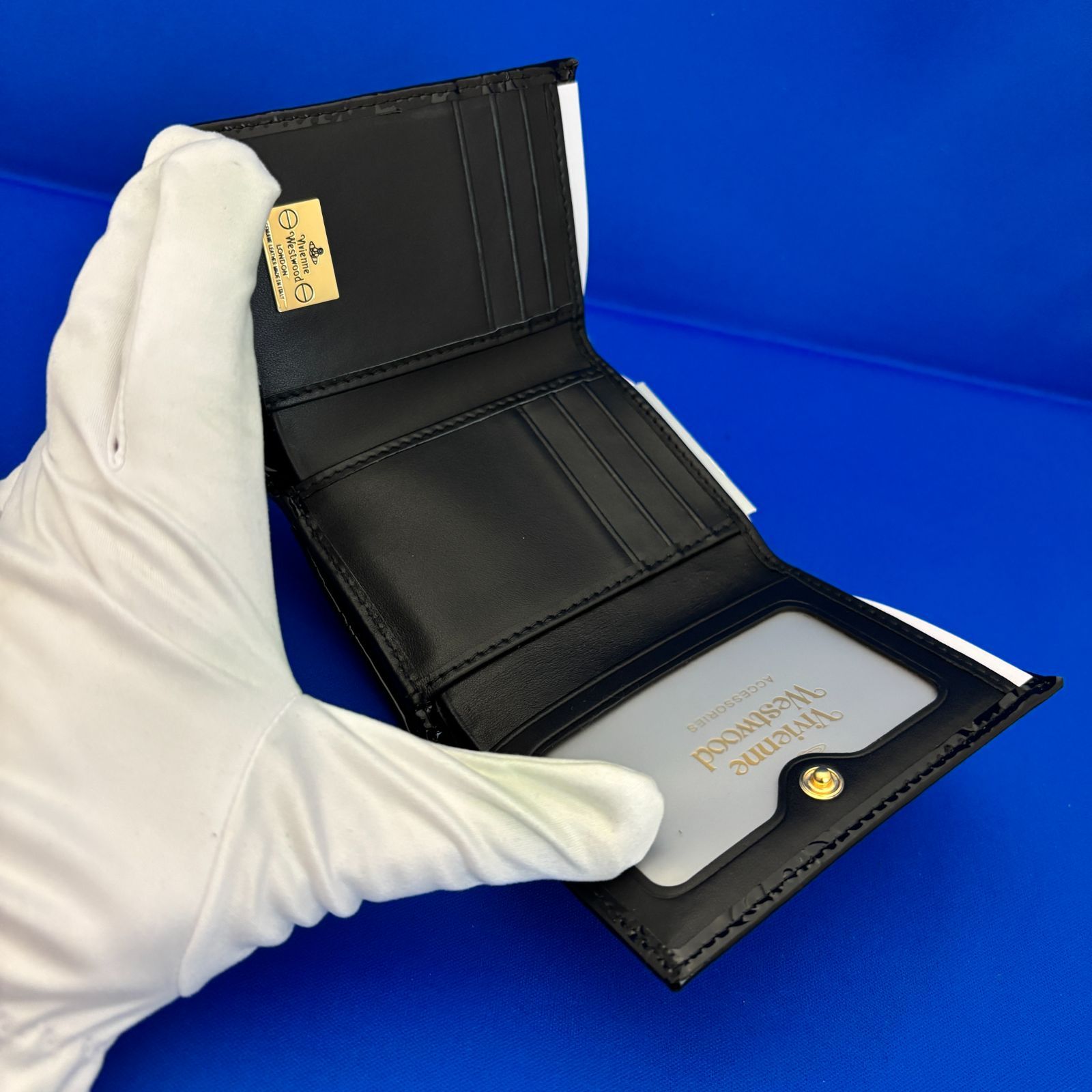 ヴィヴィアンウエストウッド 三つ折財布 BLACK エナメルブラック 2 げOK