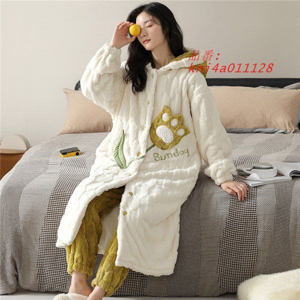 クマ柄 ペアパジャマ 冬 もこもこ 大きいサイズ 部屋着 レディース 結婚祝い 冬用 あったか ルームウェア カップル メンズ kni 4 a 011128