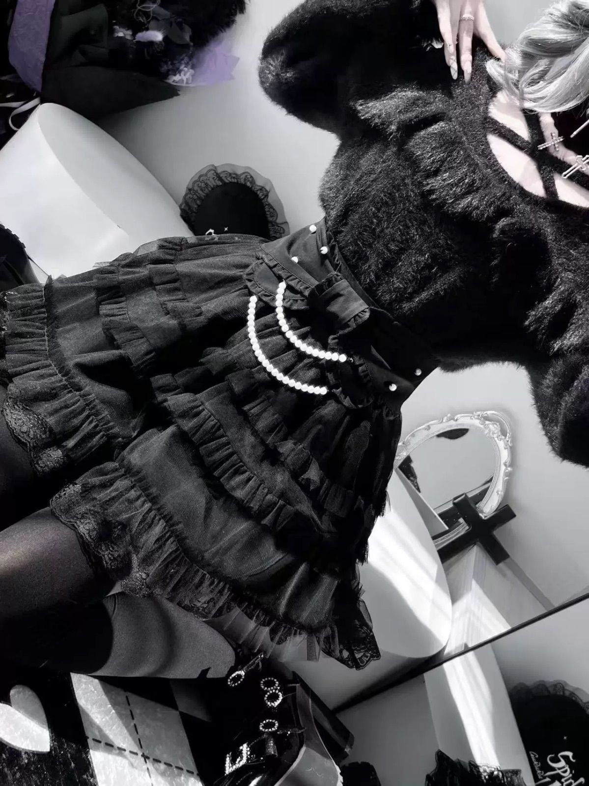 リボンとパールのアクセントがゴシックな魅力を引き立てます♡
