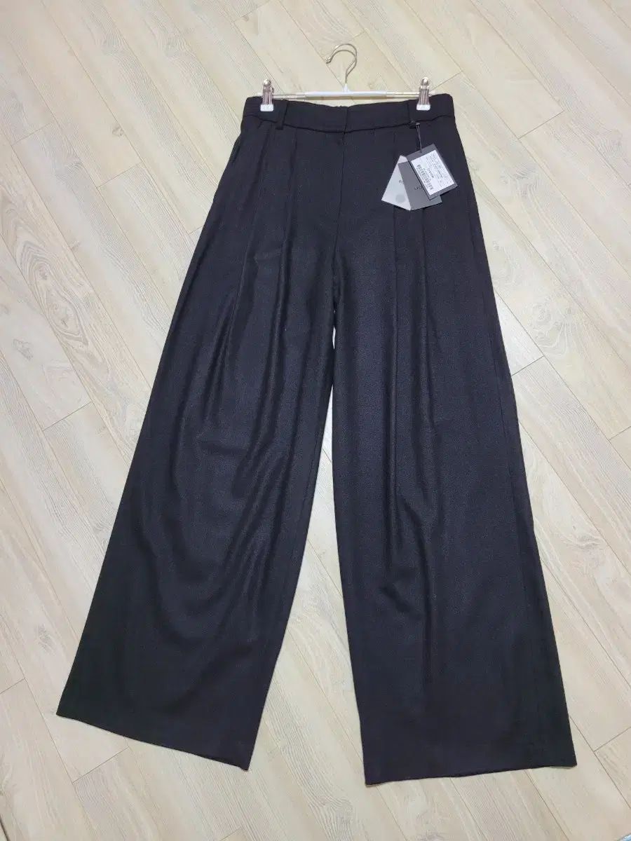 カシミア ブレンドなので柔らかく光沢のあるツータックパンツです
