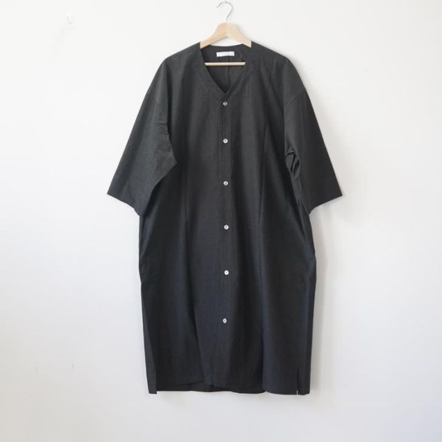 オーガニックコットンリネンシャツワンピース(チャコール)