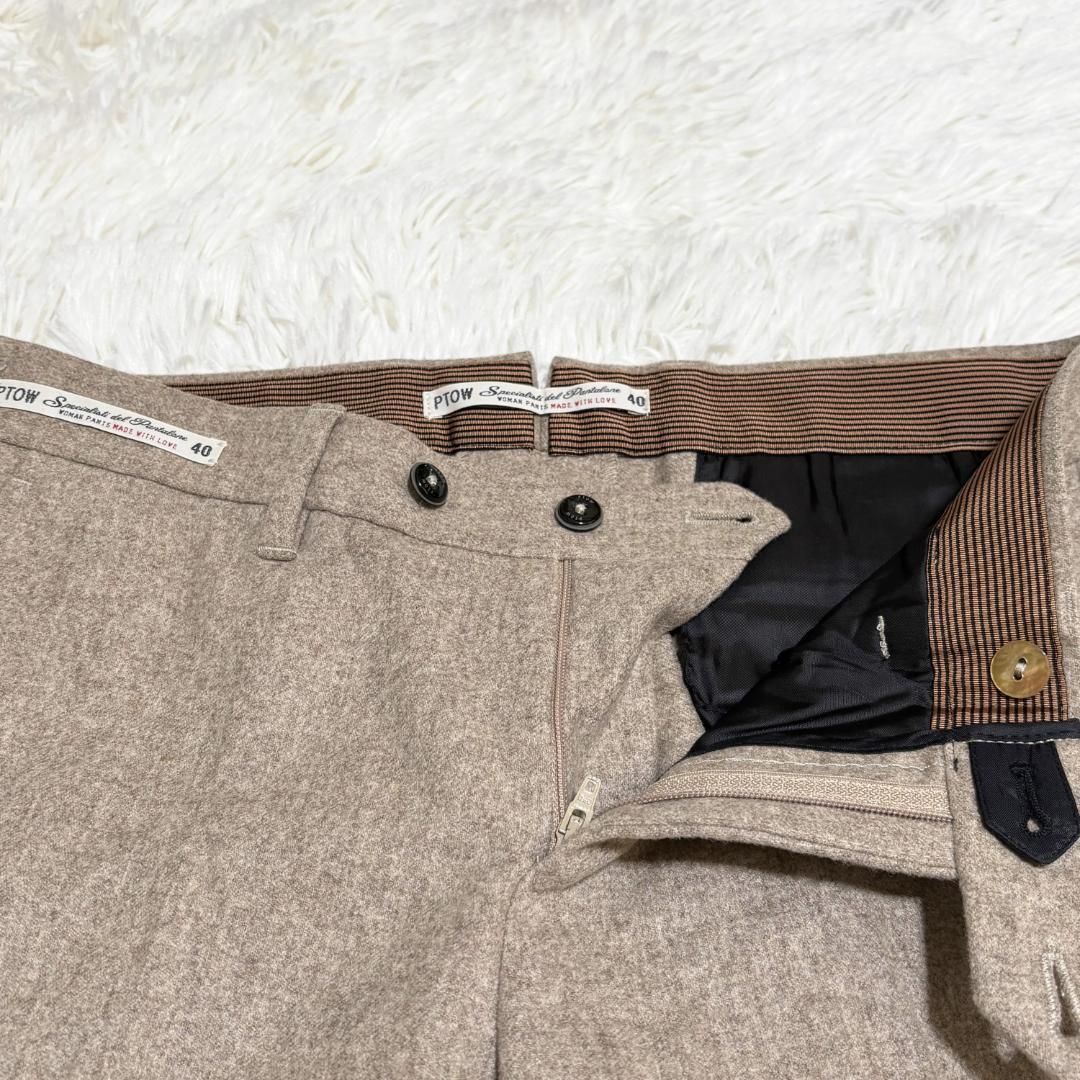PT 0 W ピーティーゼロダブリュー ウールスラックスパンツ 40ベージュ