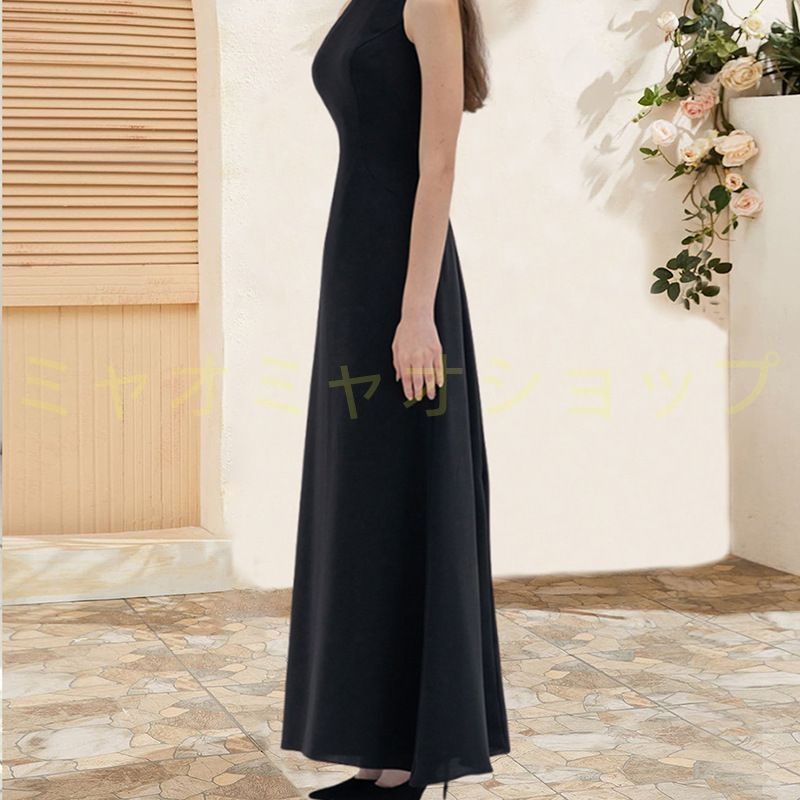 ドレス 黒 大人 ピアノ 発表会 ロングドレス 演奏会 結婚式 母親 ピアノ発表会 袖なし ノースリーブ ワンピース ブライズメイド ロング 演奏会ドレス ミモレ丈 シンプル 1326