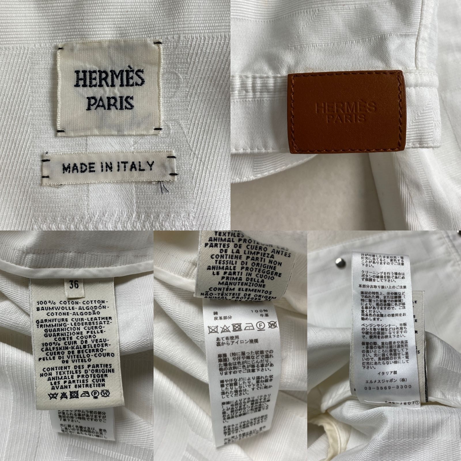 【ポイント】HERMES 現行 H模様 クロップド セリエボタン 34 XS S相当 ホワイト