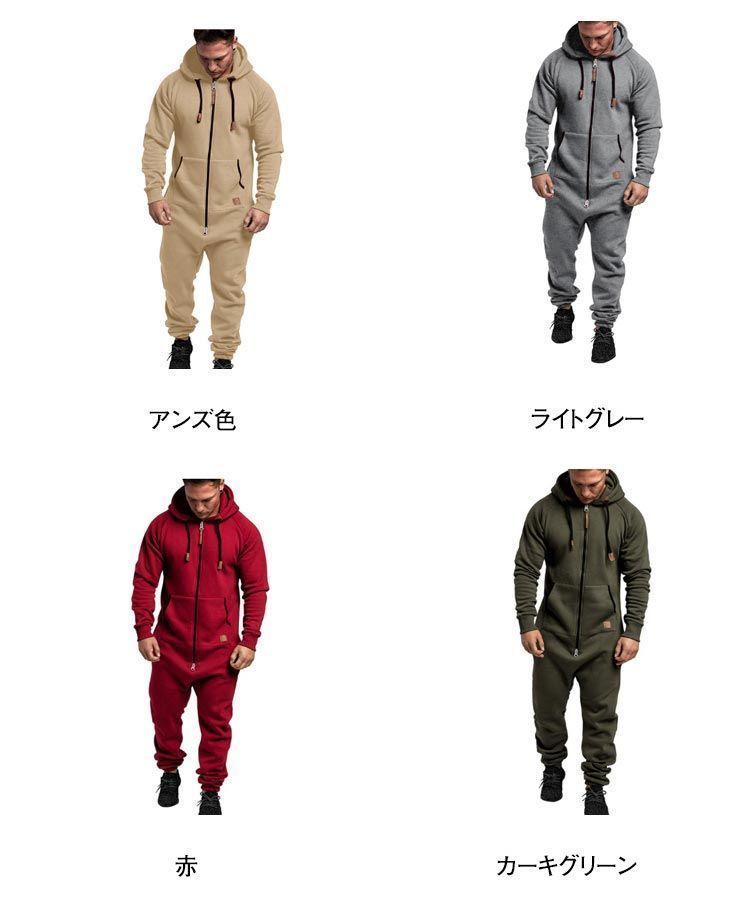 パーカー ツナギスエット ツナギ ワークウェア オーバーオール 部屋着 オールインワン ジップアップ フード付き スウェット 長袖 メンズ 無地 運動服 ルームウェア 作業服 つなぎ lj 7388