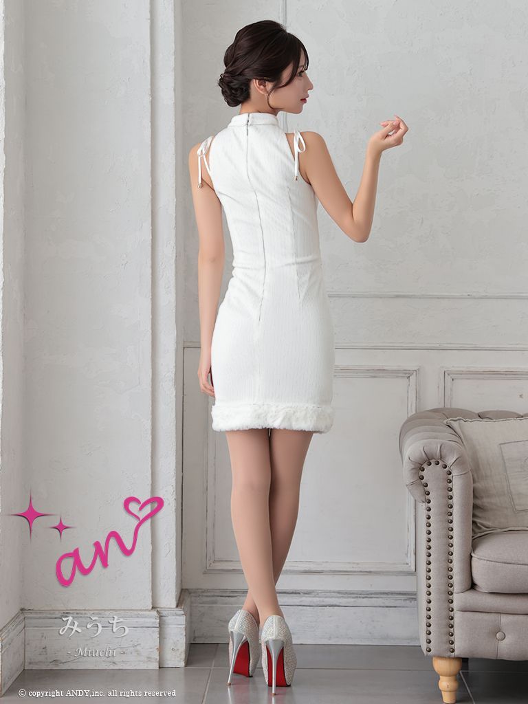 ホワイト AOC 3760-W-2409 AOC-3760 an |アン バストジッパー| ハイネック| カットアウト| ノースリーブ| ポケットデザイン| 裾ファー| タイト| ミニドレス| キャバドレス| ナイトドレス