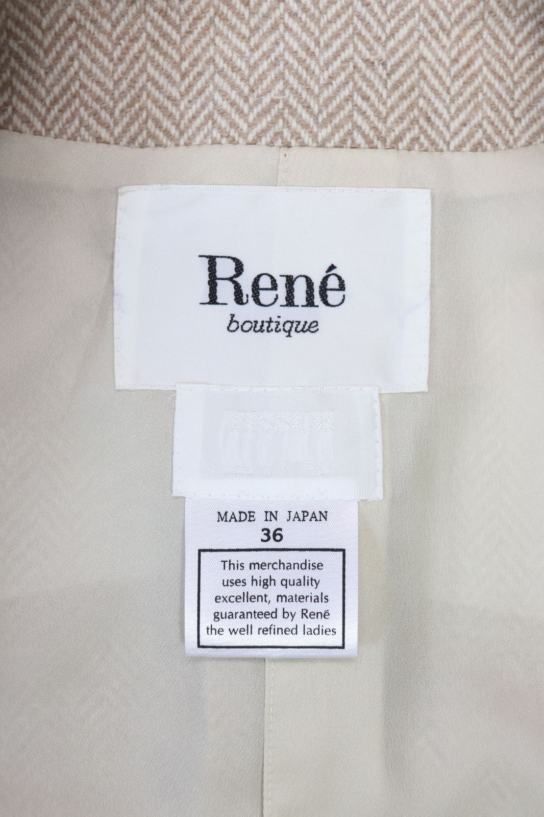 Rene ヘリンボーン柄ツイードジャケット&スカートスーツ ベージュ ルネ