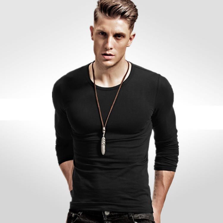 スリムフィット長袖インナーtシャツ。Vネック&Uネックの2タイプあり!