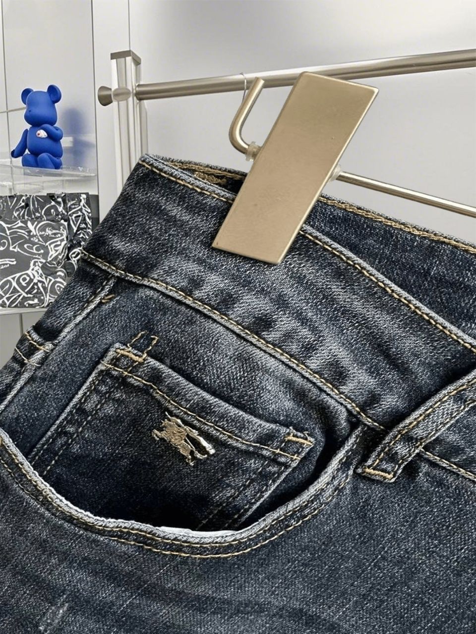BURB 2025 年夏新作の軽量ジーンズです。オリジナル設計の金物ロゴと洗水・加工などの重プロセスを施し、柔らかく伸縮性のある牛仔生地が肌触り快適。脚線にフィットするパターンで着心地抜群で、ファッション性も兼ね備えています。高品質版でブランドマーク・サイズ表示・生地表示の三マーク完備です。