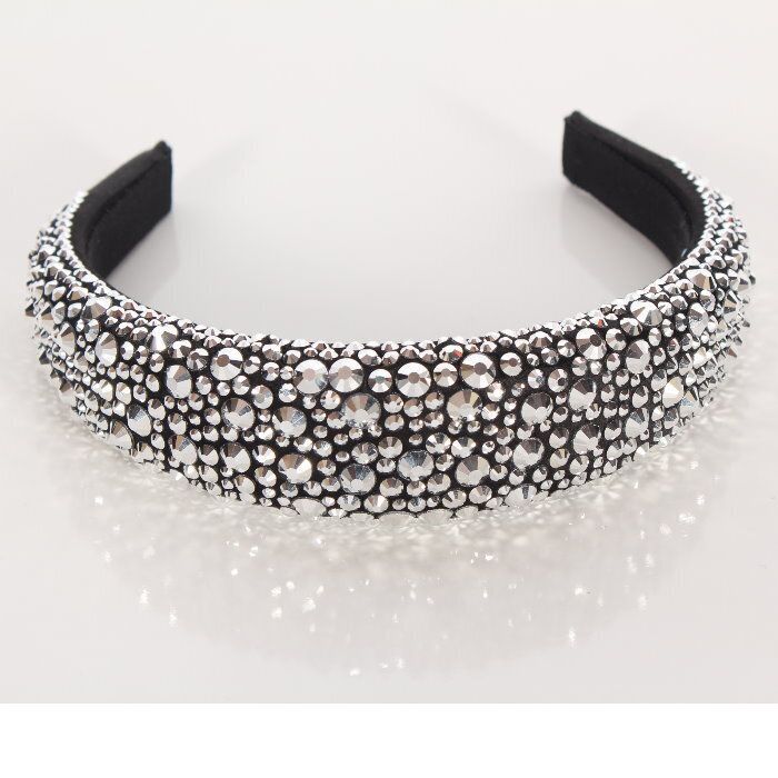 ・キラキラと輝きを放つファセット クリスタルが全体に施されたカチューシャ。