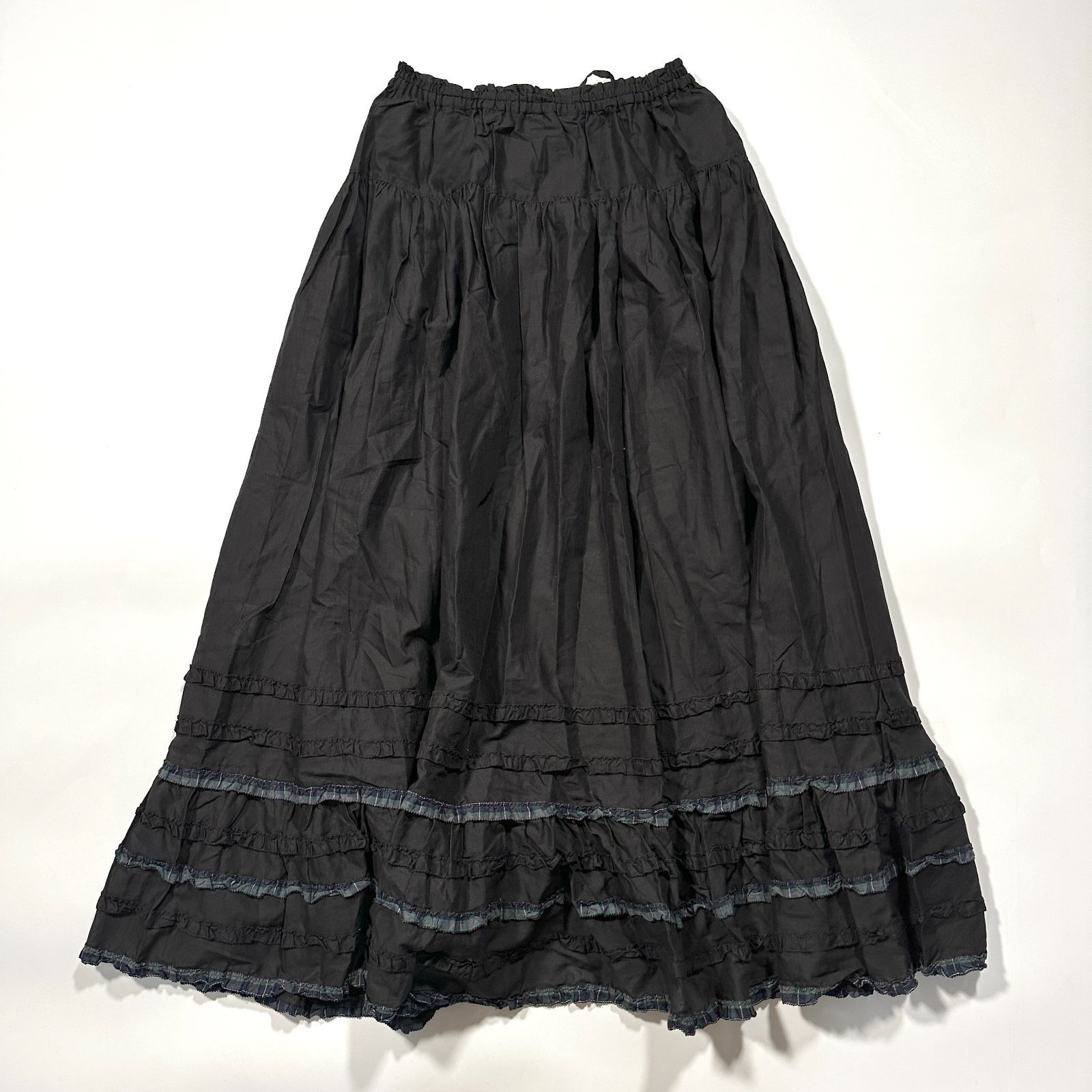 PINK HOUSE ピンクハウス ティアード チェック ロング スカート リボン ピコフリル ブラック