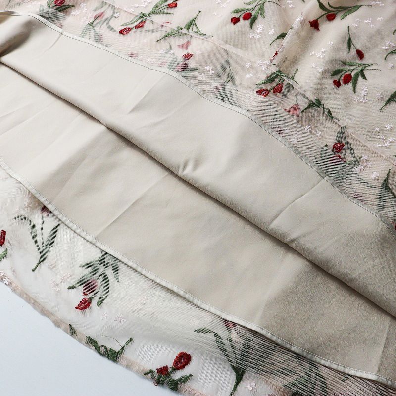 【品名】美品 定価2.4万 大きいサイズ ローズティアラ Rose Tiara チューリップ刺繍スカート 42 ベージュ┃フラワー 花柄