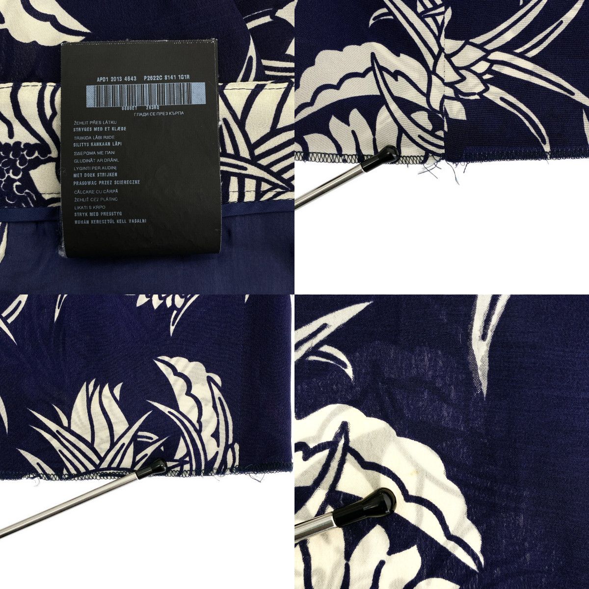 PRADA プラダ シルク 総柄 フラワー プリント テーパード パンツ 38 S ネイビー ホワイト レディース