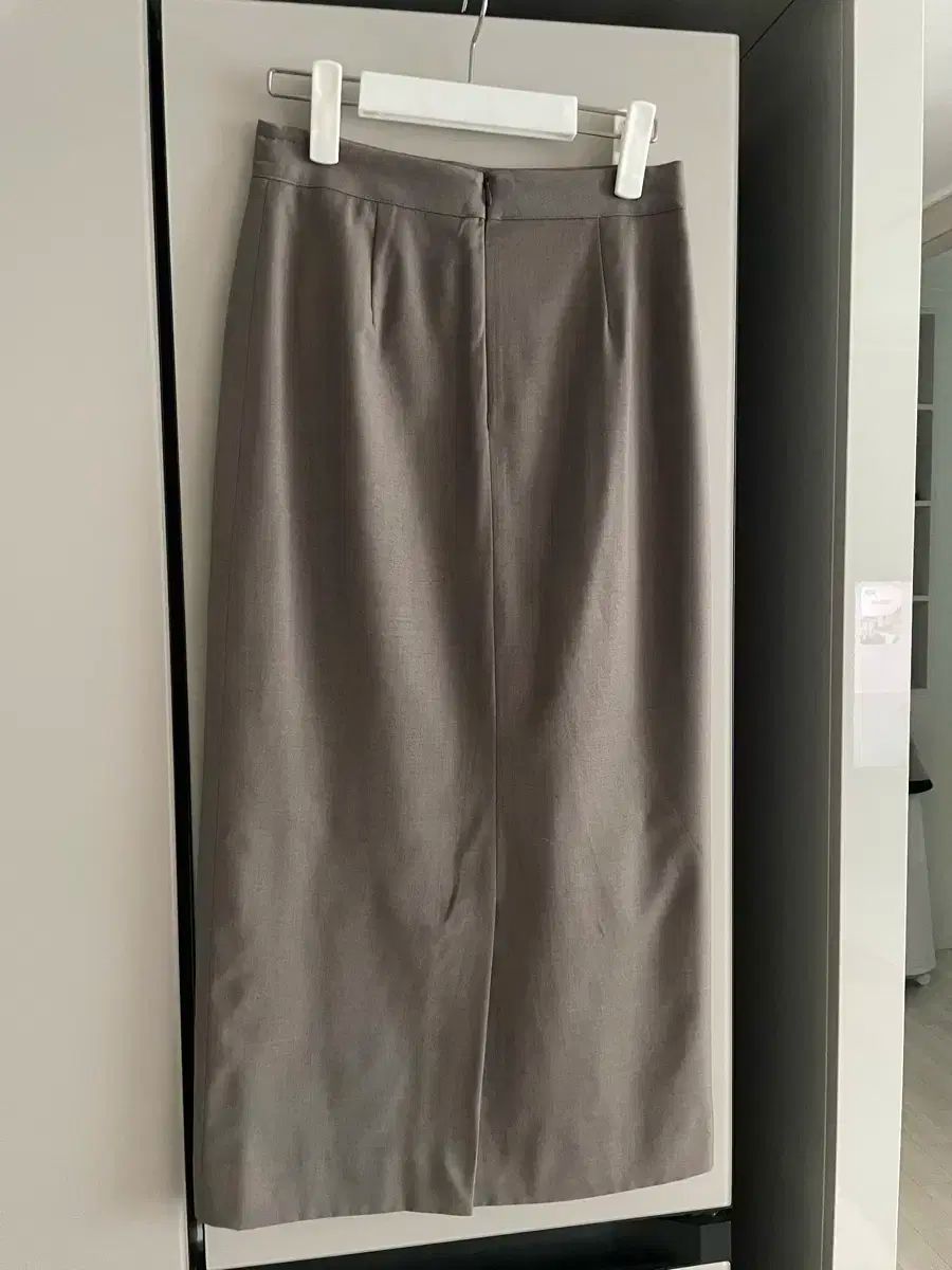 落ち着いたグレーブラウンのHラインスカートです。サイズは小さめで、ミディ丈ですっきりとコーディネートしやすいです。ハンガーに掛けて収納するので、シワほとんどありません。他に質問がない場合は、すぐに安全な支払いを行ってください!