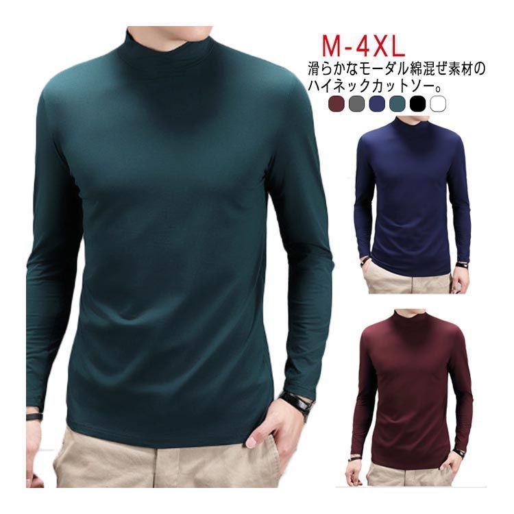 カットソー ハイネック ビジネス メンズ 長袖 無地 レイヤード 大きいサイズ インナー 普段着 春秋 冬 モダール 通勤 3 XL M 重ね着 韓国ファッション トップス L 2 tシャツ cjfj 143618