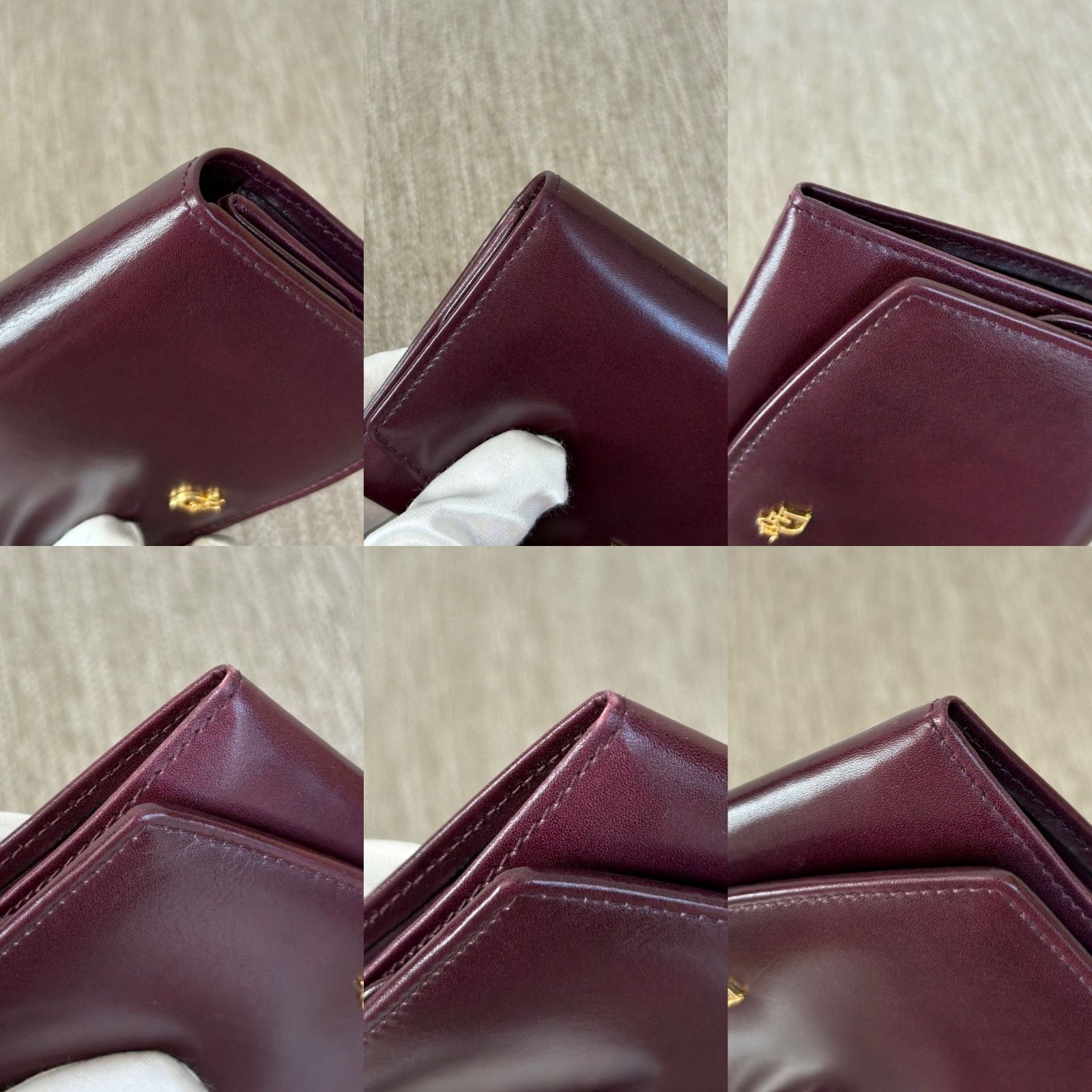【箱付き】【美品】クリスチャンディオール 二つ折り財布 短財布 小銭入れ レザー 革 コインケース ヴィンテージ ボルドー パープル バーガンディ Christian Dior Vintage Short Wallet Coincase 22281