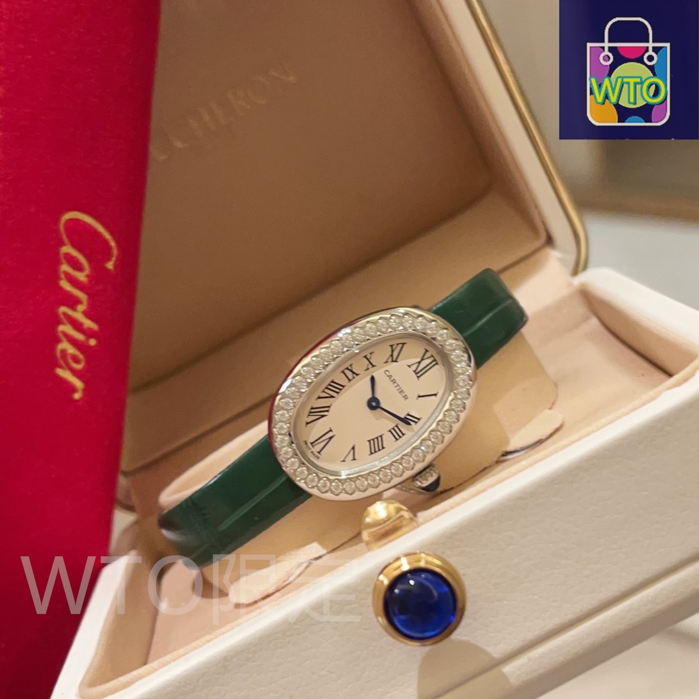 今日 Cartier カルティエ バイニュアールシリーズ 一つの凸円形サファイアを象嵌