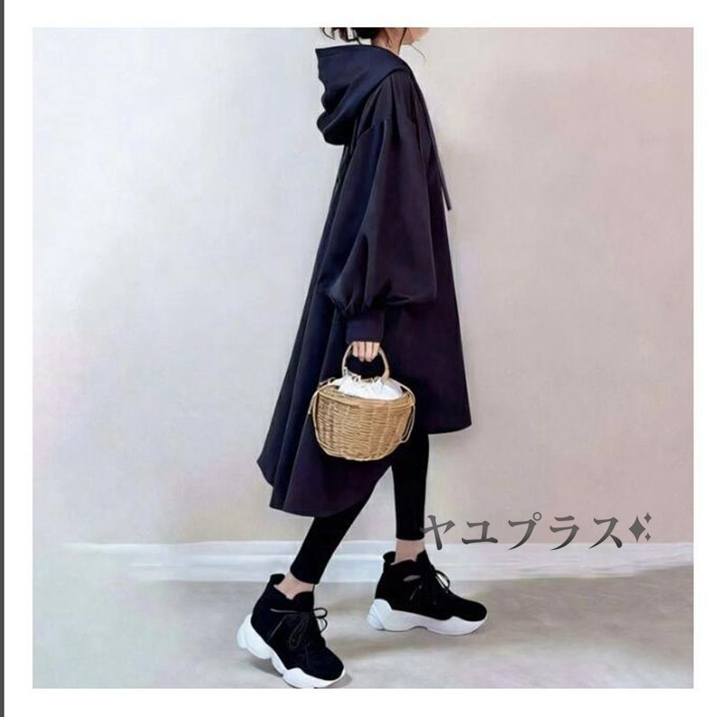 パーカー ワンピース フード付き ロング ワンピース レディース パフスリーブ ボリューム袖 ワンピ ロング丈 長袖 無地 おしゃれ 大人 可愛い ゆったり カジュアル 体型カバー 大人 きれいめ 春 秋 冬 大きいサイズ weixz183