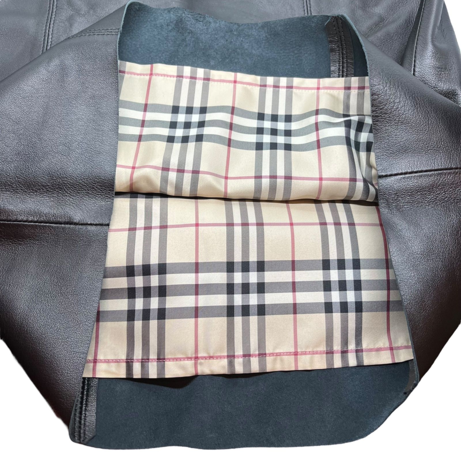 BURBERRY LONDON バーバリーロンドン ラムレザー ミモレ丈 膝下 スカート 羊革 ブラック ノバチェック 裏地 40サイズ