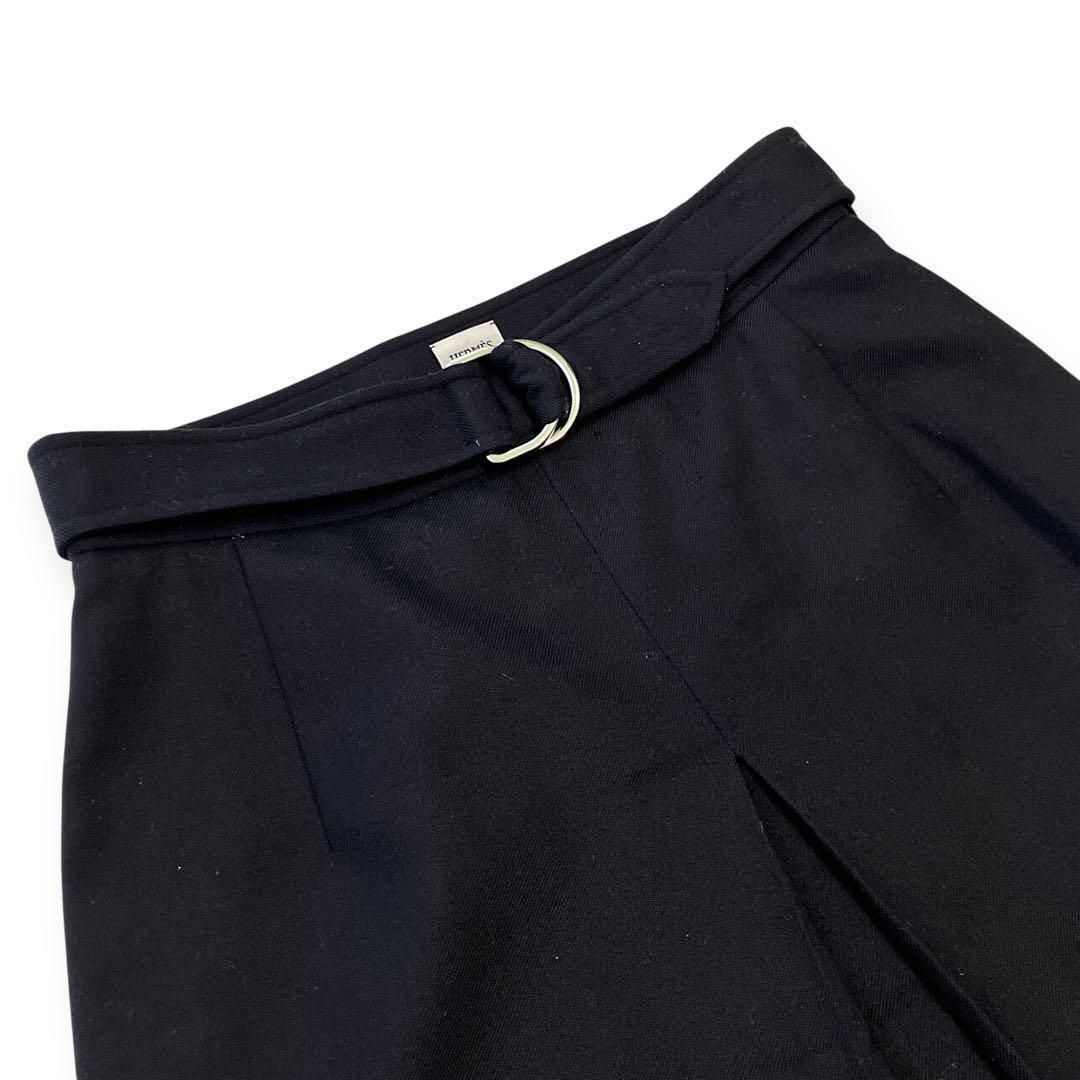 エルメス プリーツフ スカート S〜M 黒 ベルト付 フランス製 デザイン