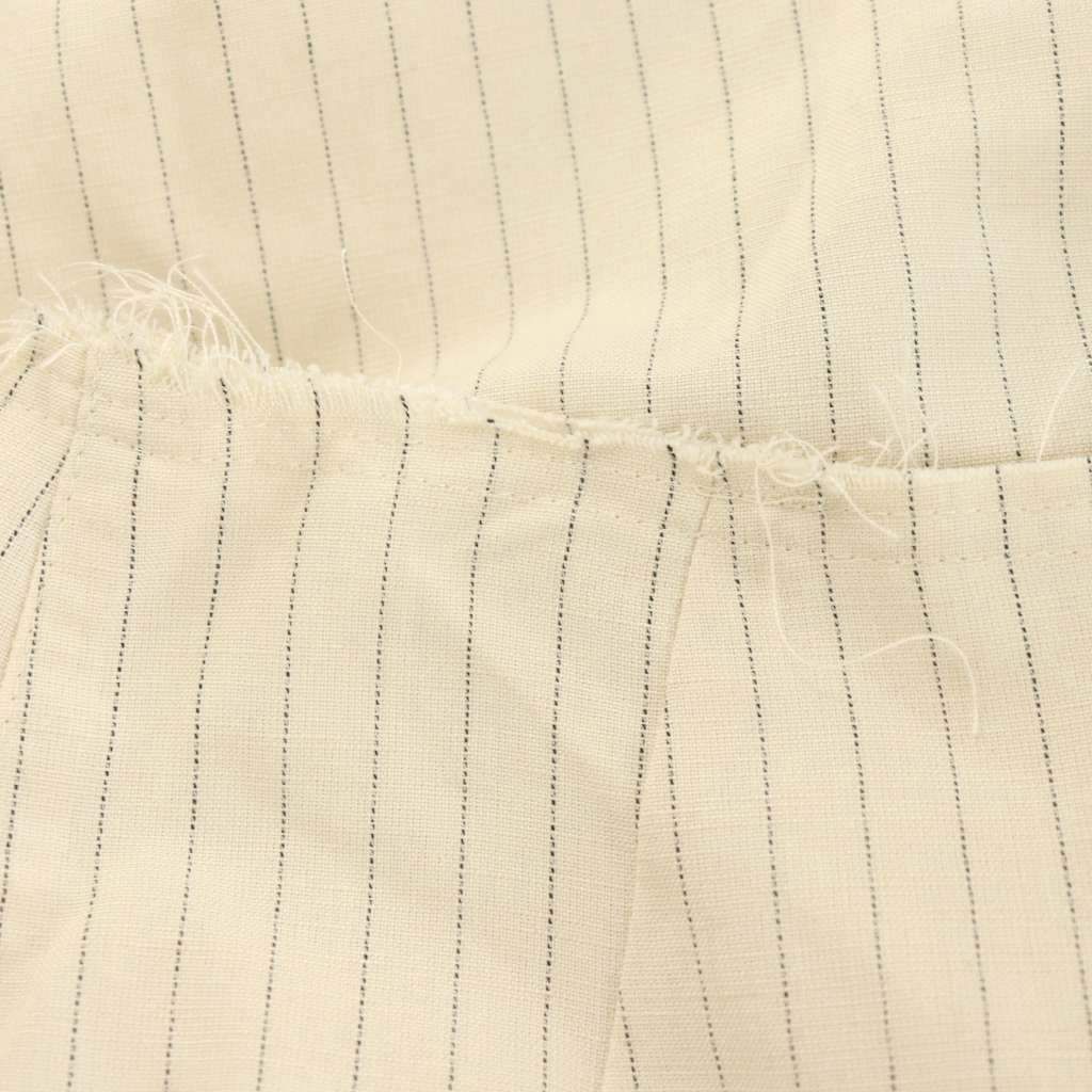 アキコアオキ animalistic trousers ユニークシルエットパンツ ストライプ柄 カットオフ 裾ジップ リネン混 麻 36 ベージュ AA 23 SS-P 02-01 AN GY 52