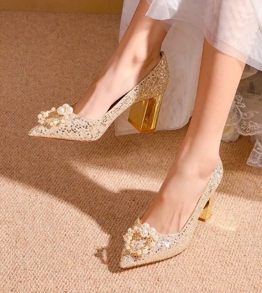 パールビジュー パーティーシューズ 太ヒール ウェディング