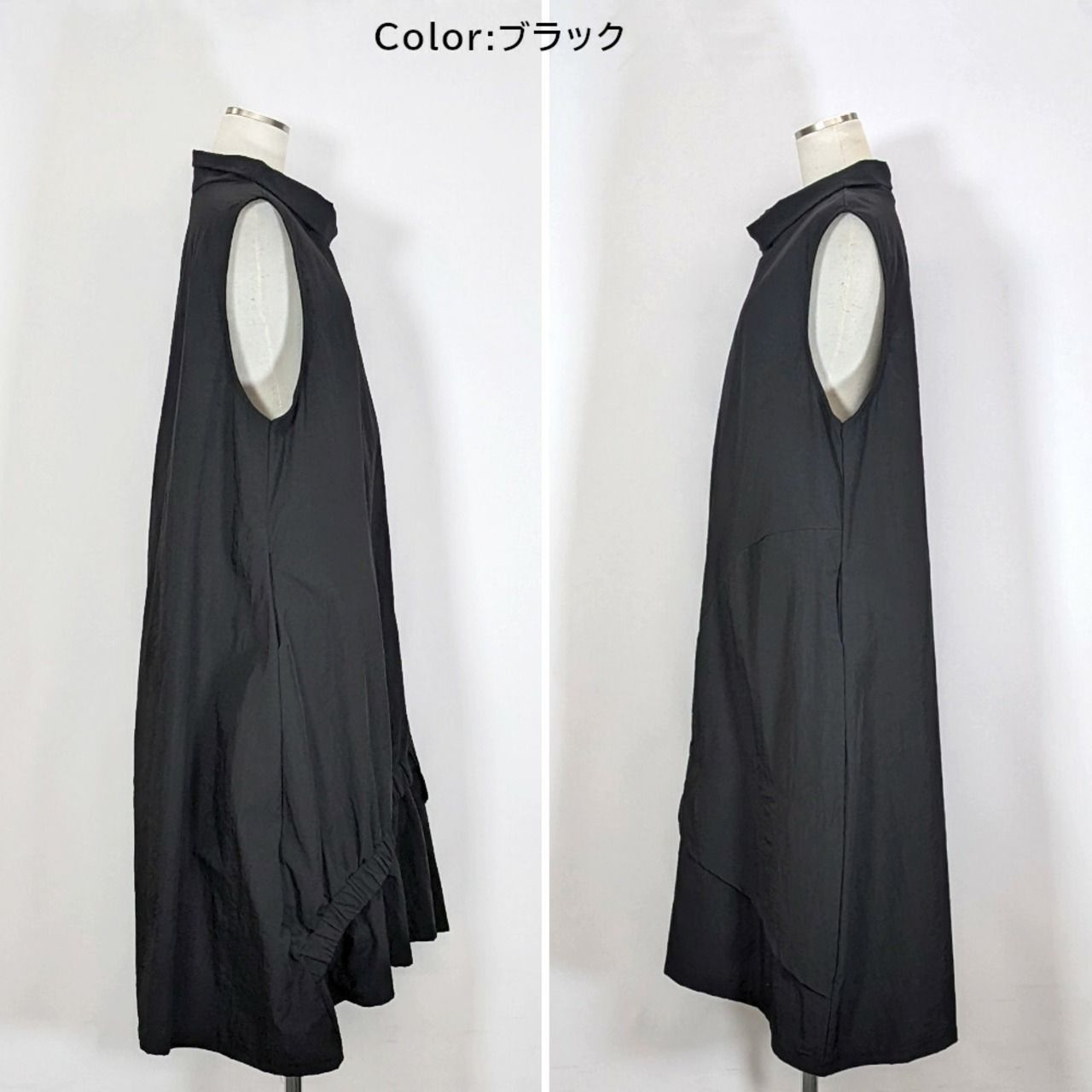 ジャンパースカート ノースリーブ ワンピース レディース ハイネック ジャンスカ 黒 大人 60代 50代 40代 春 夏 秋 冬 オフタートル 重ね着 ナイロン ブラック
